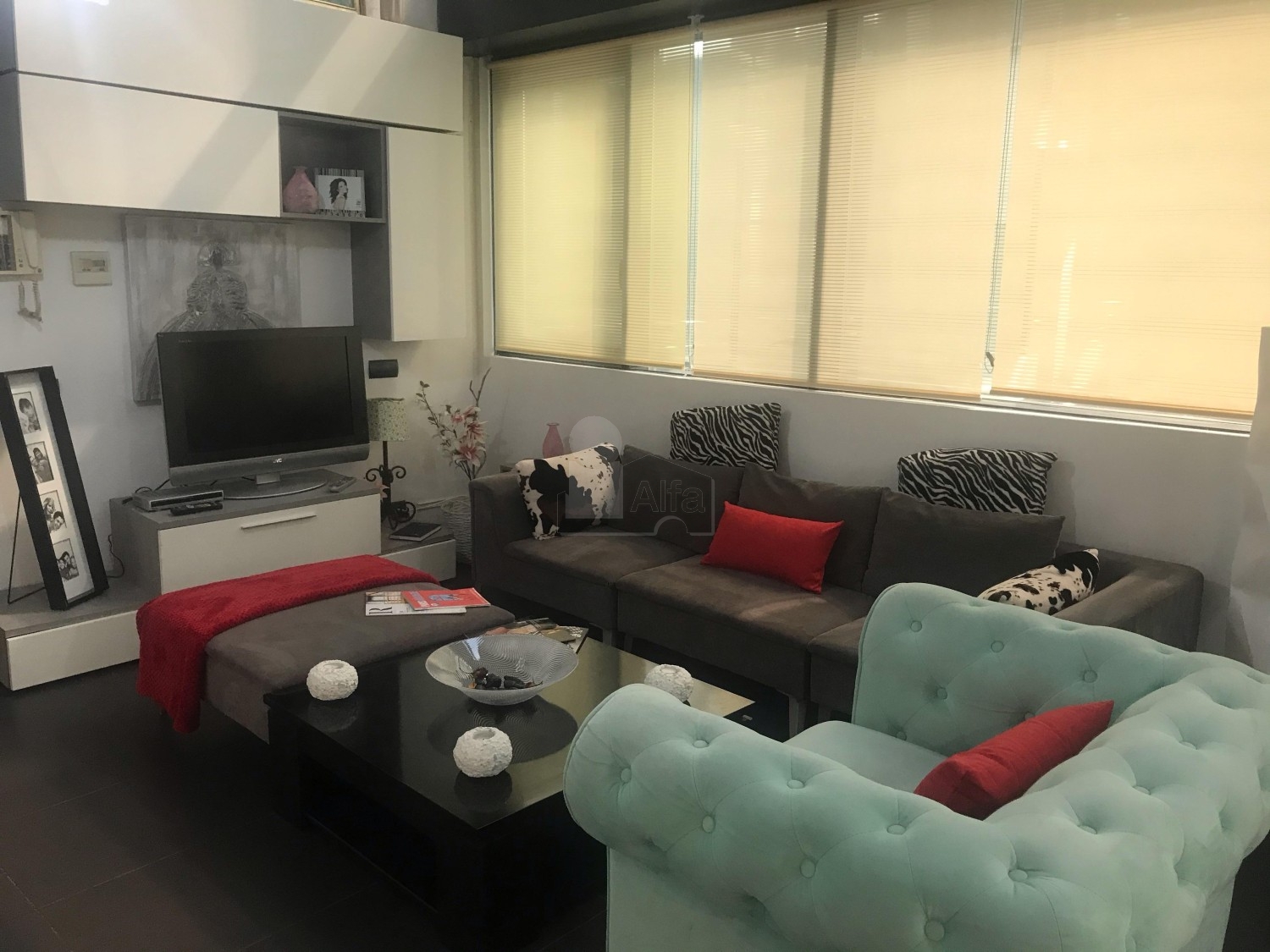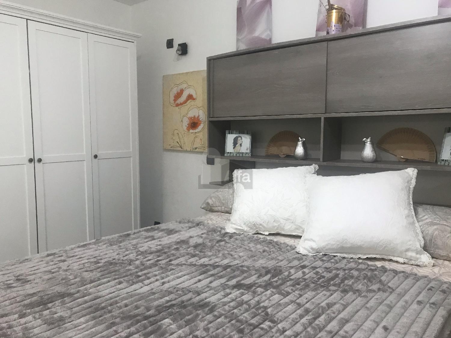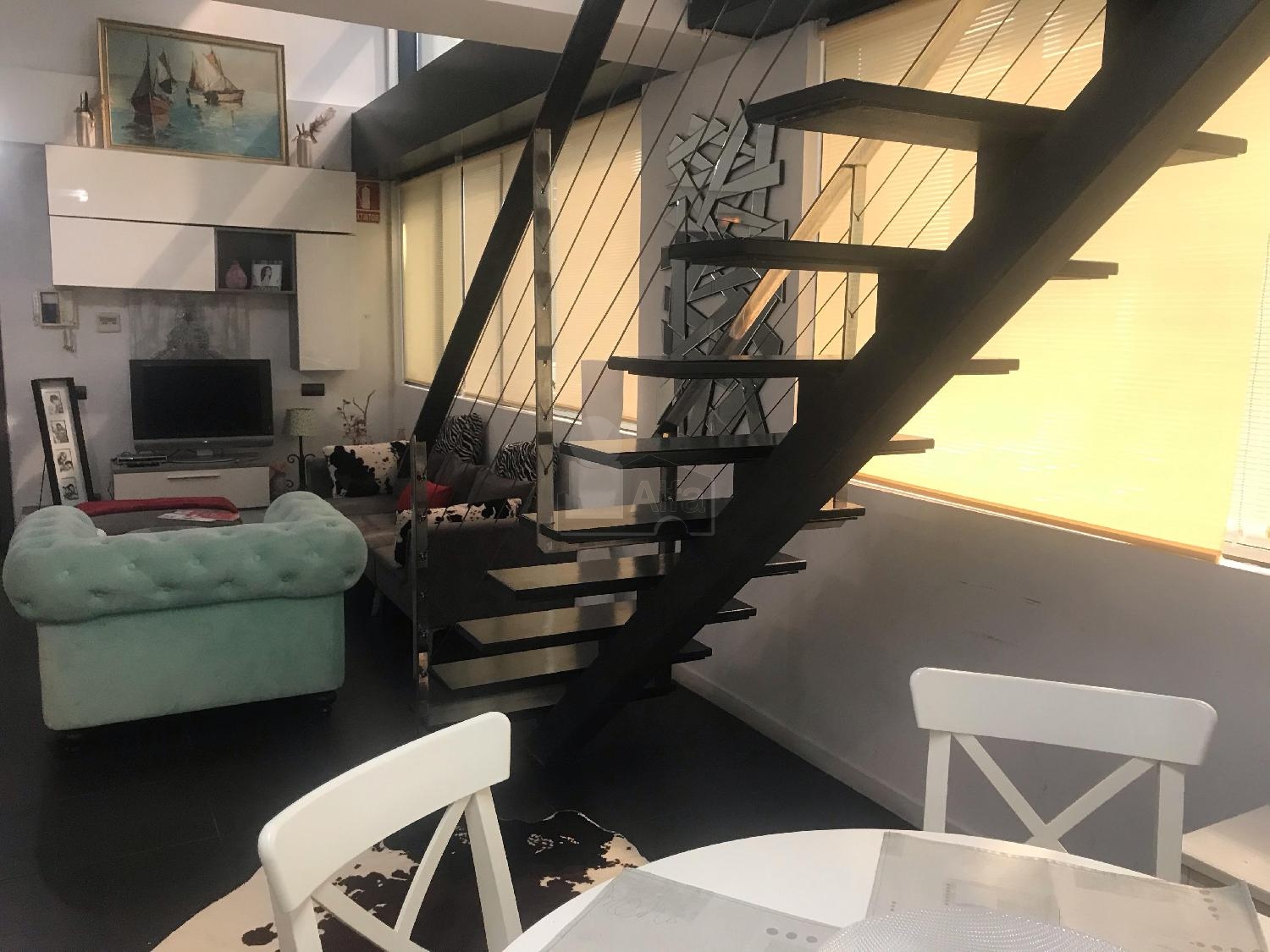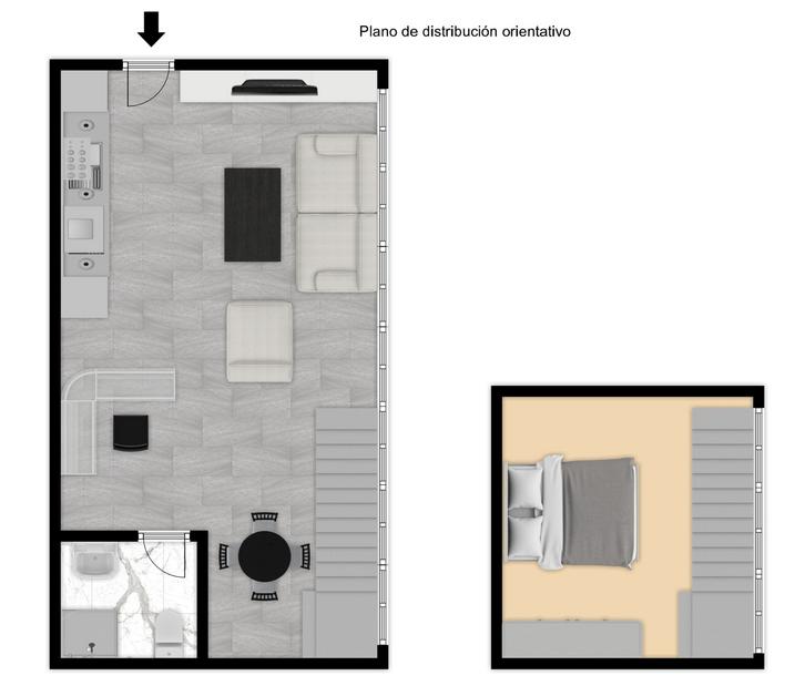 Abajo tiene salón con la cocina abierta (lavadora, frigorífico, vitrocerámica y microondas), y baño con ducha).